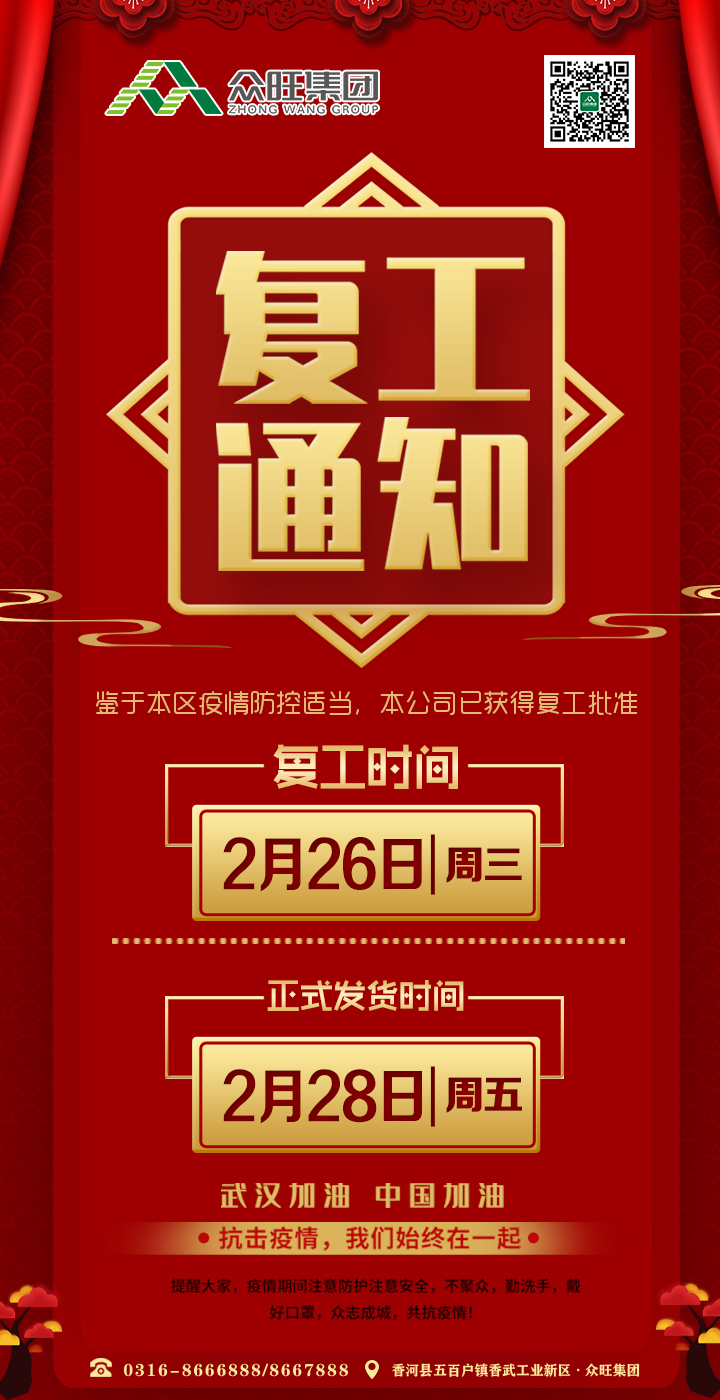 ★復(fù)工時(shí)間:2020年2月26日,周三